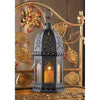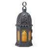 Candlelight takes on a dramatic air as it shines through golden pressed-glass panels and lacy cutout metalwork. A stunningly illuminating decoration!Weight 0.7 pounds. 4.12" x 4.12" x 10.5". Metal, Glass.